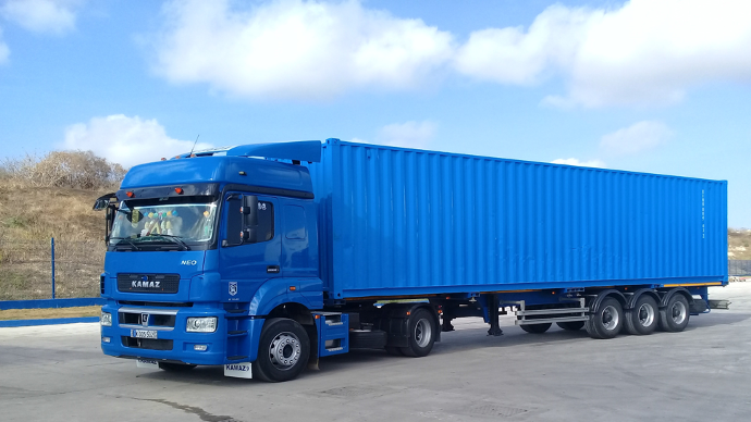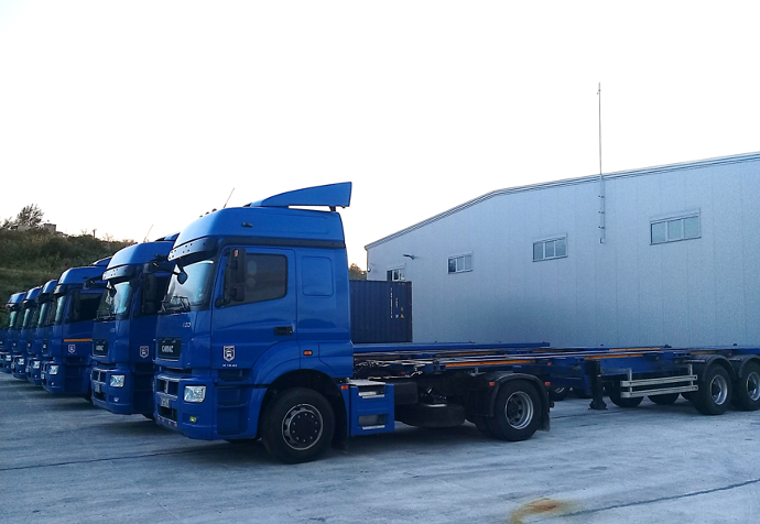 Nuestras cuñas tractoras pueden acoplar, según las necesidades del cliente, un semirremolque portacontenedor o una plataforma para mover variados tipos de carga. Este equipo posee autonomía suficiente para recorrer aproximadamente 2,100 km sin rellenar el tanque.